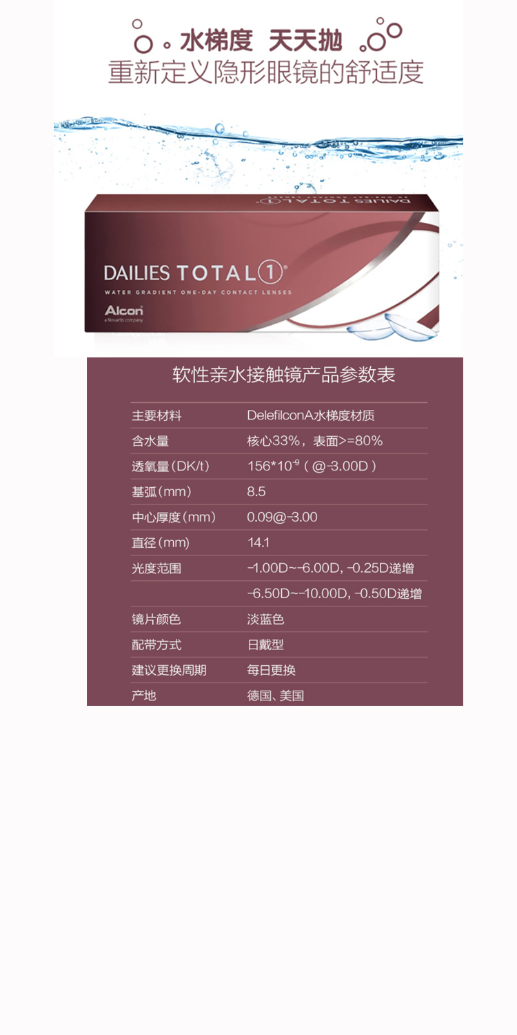 供應 愛爾康DAILIES TOTAL 1 水梯度硅水凝膠隱形眼鏡日拋30片裝